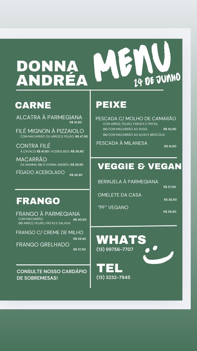 Welcome to Donna Andrea Restaurante & Cafe, a culinary gem nestled in the heart of Santos, Brazil. This family-run establishment is celebrated for its warm atmosphere and authentic local cuisine. The menu is a delightful exploration of traditional Brazilian flavors, with standout dishes that promise to tantalize your taste buds.